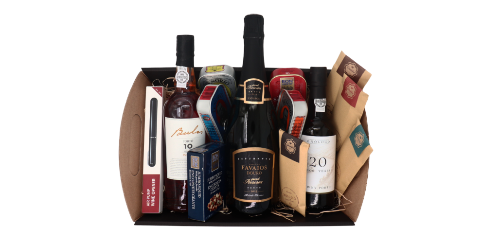 Vores signaturgavekurve er en hyldest til Portugals rige arv indenfor (port)vin og kulinariske skatte. Vi kan nøje sammensat en udsøgt samling af portugisiske specialiteter, der vil glæde dine modtagere. Vores gavekurve indeholder: