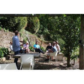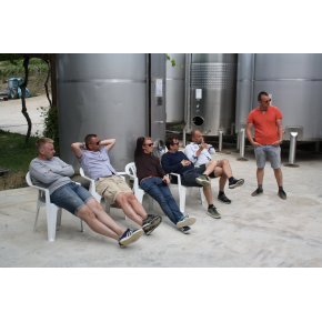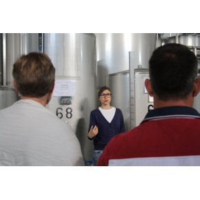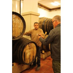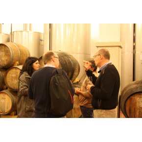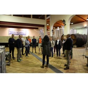 Vi fik en længere forklaring om baggrunden for familieforetagendet og fik fremvist hvordan vinen fremstilles i de forskellige produktionstrin. Hertil smagte vi os igennem forskellige prøver direkte fra fadene: