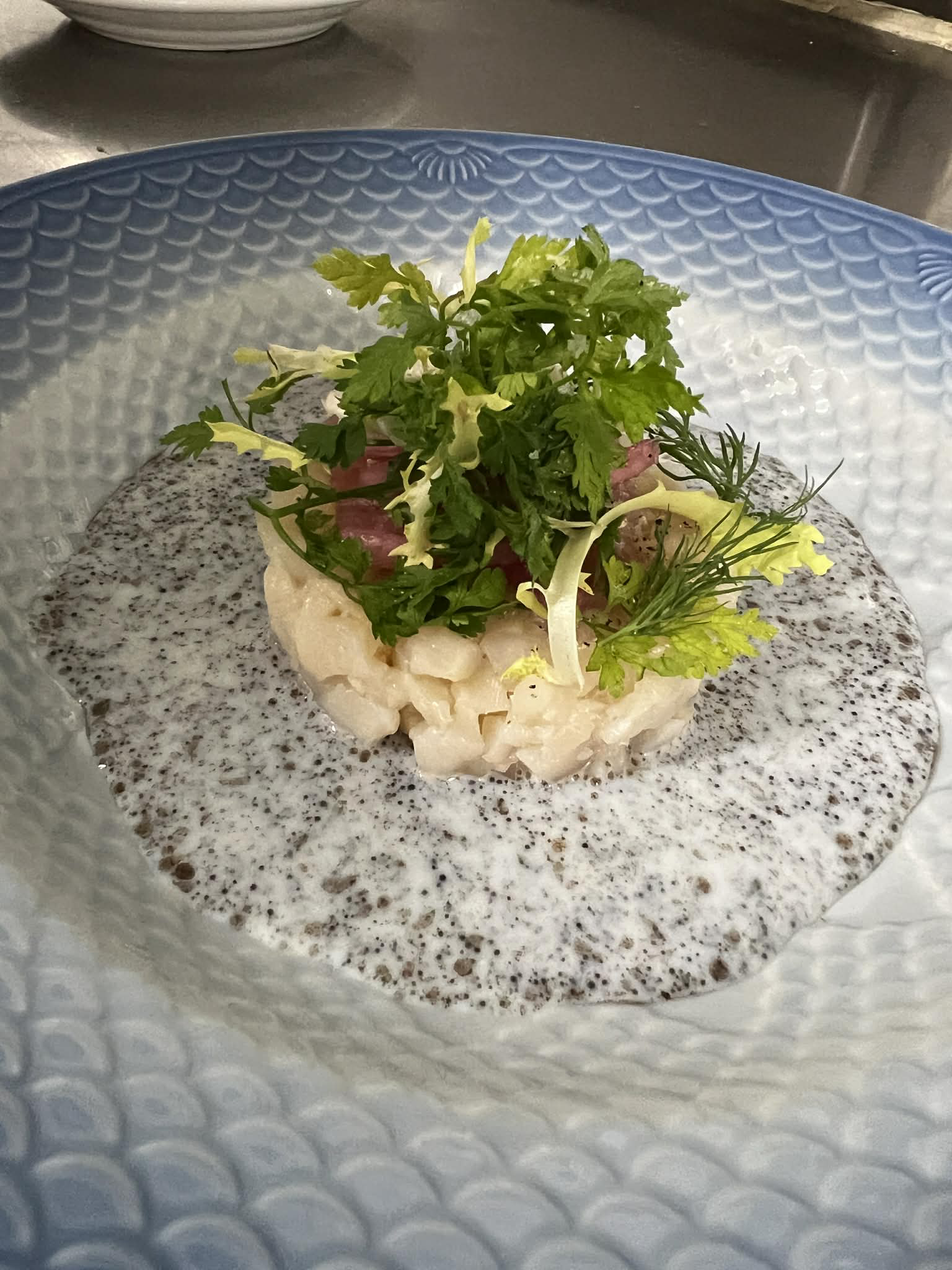 - Jomfruhummer bisque med let pisket fløde med cognac.